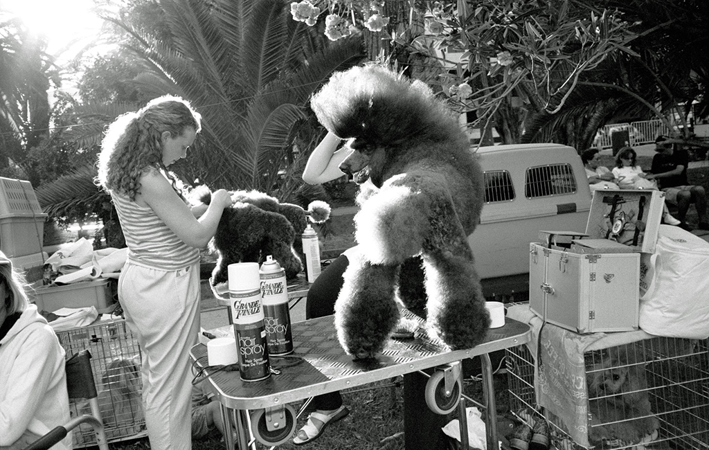 Taking a stroll through a park in Estoril, Portugal one day, Fabien spotted a dog show and was struck by the fabulous owners and preened pooches! The photo series Doggie Style captures the preparatives happening behind the scenes, drawing parallels to the effervescence before a fashion show. Photographed in a non-intrusive manner, the images show the proud owners’ dedication and passion for their pets, sometimes with a dash of humour! Fabien told Aserica, “It is interestingto see that a true symbiosis exists between people and their dogs. I wanted to explore the notion that animals are not superior to humans in these photographs”.