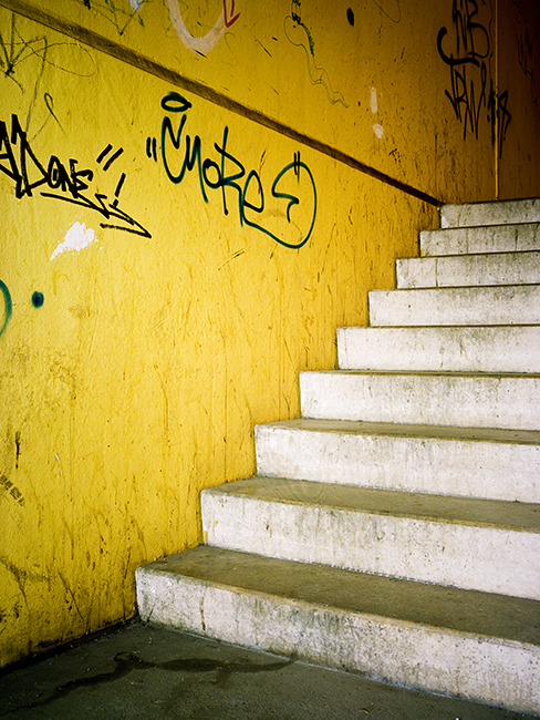 From an outsider’s perspective, I would say yes. The Gropiusstdt definitely became a symbol for the failure of these huge modernist style projects and the success of Christiane F.’s book made it known beyond Berlin’s borders. For a while, part of the Gropiusstadt was one of a few “no go areas” in Berlin. It still has a bad reputation, even though it’s getting better. When I started to photograph in 2011 a lot of people warned me not to go there, but in my experience, it is not dangerous at all. Of course, you meet a lot of youngsters – they are living there after all! On my visits, I met an old man, who worked as a bailiff in the 60’s, 70’s and 80’s and often had to deal with Christiane F.’s parents. He told some interesting stories about the development of the whole area that offered a refreshing perspective. He and his wife were the first inhabitants of one of the first buildings and still live in the same flat today!